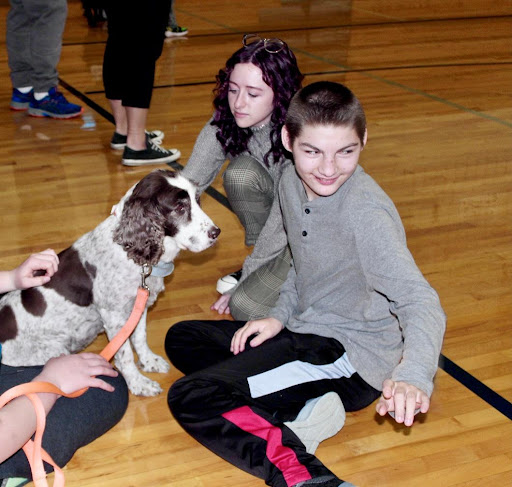 “We try to be hands-on and match the different personalities of the kids with the different personalities of the dogs,” explains Witt. “If somebody just wants to sit and pet the dogs, that’s perfect for some dogs, and if somebody wants a high energy dog that wants to play fetch or go for walks, we have that too.” The dogs and volunteers begin their visits in stations and bring in students to meet the dogs and to allow for a “feeling out period.”