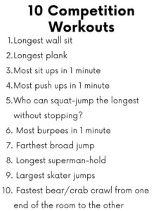 - Let the kids create the workout! It’s so important to give kids the autonomy to build and create something on their own. Let them choose exercises they enjoy, know how to do, and feel confident performing. That helps them to establish a positive attitude towards working out.