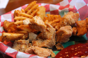 Guests can choose from 18 different sauces ranging from mild to very hot for the chicken chunks and wings. The rest of the menu is updated regularly with a combination of old favorites and new items, and the Spring Meadows and Ralphie’s To-Go location on Monroe St. also serve JoJo’s pizza. The full bar has a selection of rotating craft beers, and the decor is that of a standard sports bar with walls lined with neon beer signs and flat screen televisions tuned in to various sporting events and Keno drawings. Several locations have outdoor patios.