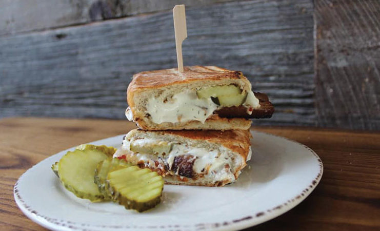 I ordered the Pork Belly Cuban— pressed cubano bread, Toledo Spirits Heart of Gold pickles, whipped goat cheese and smoked chile mustard— with house made chips. The sandwich was yummy and big enough to provide leftovers for next day’s lunch. My husband ordered the avocado melt beef burger with smoked tomato jam, chipotle crema, seasoned avocado, crispy goat cheese, and Balance Farms sunflower sprouts. The burger had that delicious homemade feel. While we both enjoyed our sandwiches, the chips were jaw-dropping good–some of the best house potato chips we’ve ever had!