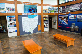 The redesigned rest stop also features pictures and tourism information that spotlight the significant contributions Ohio has made to aviation and space work, history, research, and exploration. Scannable QR codes on the walls allow guests to learn more about nearby attractions such as the Historic Paul Laurence Dunbar House, local and state parks, public universities in Ohio, and other historical sites in the state.Â